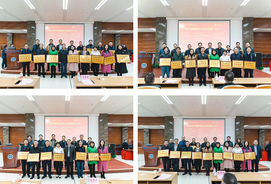 会议对2021年学校学生思想政治工作先进单位、网络育人工作先进集体、心理健康教育工作先进集体、毕业生就业工作先进集体进行表彰,taptap官方网站李景升,学生工作部部长蒋直平,副部长姚勇、张江华、易险峰、徐旭敏,就业指导中心主任徐赞分别为获奖单位颁发奖牌。会上,学工部副部长姚勇、张江华、就业指导中心主任徐赞与保卫处处长张宁辉分别就学生日常管理、心理健康教育、毕业生就业工作、防电信诈骗教育等工作做了具体部署。