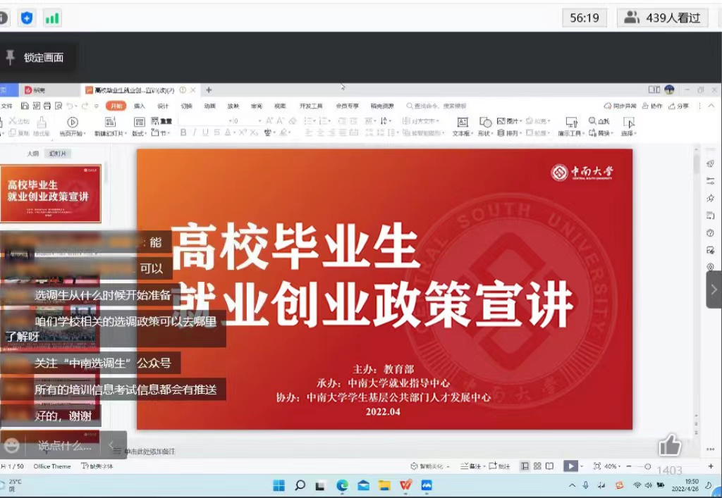 政策宣讲团围绕各项促就业政策的具体内容、获取渠道进行讲解,针对同学们反响热烈的基层就业板块,政策宣讲团细致梳理、解读了各省份选调生、西部计划、三支一扶、特岗教师、大学生村官等基层项目招录程序和考核内容。同学们纷纷选择视频连线、文字留言等方式互动交流,宣讲团认真解答各类问题,切实解决毕业生的就业困惑,帮助他们拓宽就业思路与渠道。