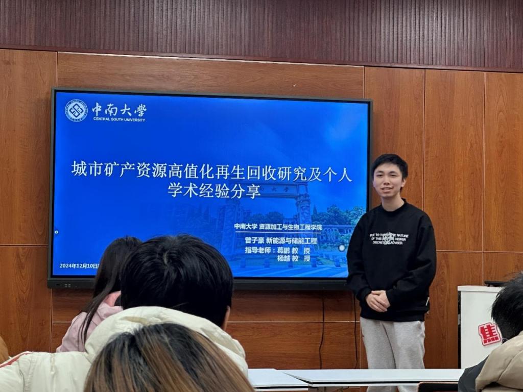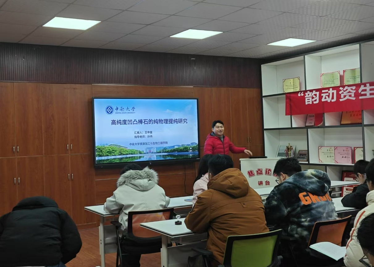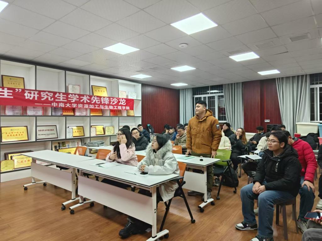 本次沙龙特别邀请了王申金以及曾子豪两位同学作为主讲嘉宾。王申金同学详细讲解了凹凸棒石提纯工艺及其广泛应用,曾子豪同学则分享了城市矿产资源高值化再生回收研究的最新成果。两位同学的精彩分享不仅展现了学术研究的魅力,更为同学们提供了宝贵的学术启示。