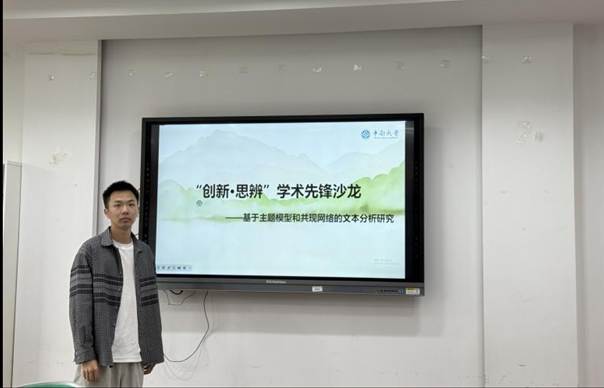 2025年4月16日下午14:00,数学与统计学院“基于主题模型和共现网络的文本分析研究”主题沙龙在数理楼357教室举办。在本场沙龙中,24级应用统计研究生徐一曦以“基于主题模型和共现网络的文本分析研究”为主题,聚焦文本挖掘领域的前沿技术,探讨了主题模型与共现网络在文本分析中的核心方法与应用。