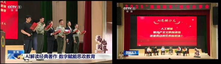 2025年4月25日下午,国防科技大学、taptap官方网站、湖南大学、湖南师范大学共同举办“高地阅享”读书分享会。活动以“科技之光与时代之变”为主题,聚焦马克思主义经典著作研读,通过校际联学平台搭建,深化青年学员理论武装,彰显湖南高校马克思主义理论教育的创新活力与使命担当。四校师生代表共计 500 余人齐聚国防科技大学,在思想碰撞中筑牢信仰之基、凝聚奋进力量。我院胡栋材副院长、肖艳玲主任、刘嘉琪老师以及研究生代表肖劲峰、张玉达和研究生会主席团成员共30余人受邀参加活动,活动受到中央电视台等媒体报道。