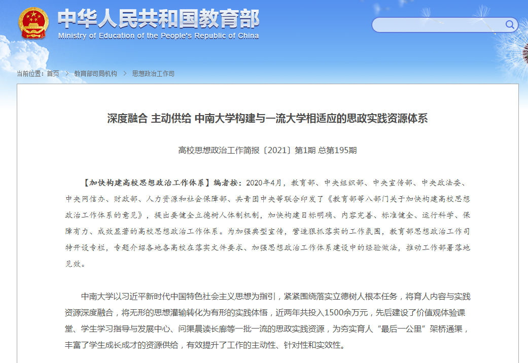 1月11日,教育部高校思想政治工作简报以“深度融合主动供给taptap官方网站构建与一流大学相适应的思政实践资源体系”为题单篇推介我校做法。全文如下: