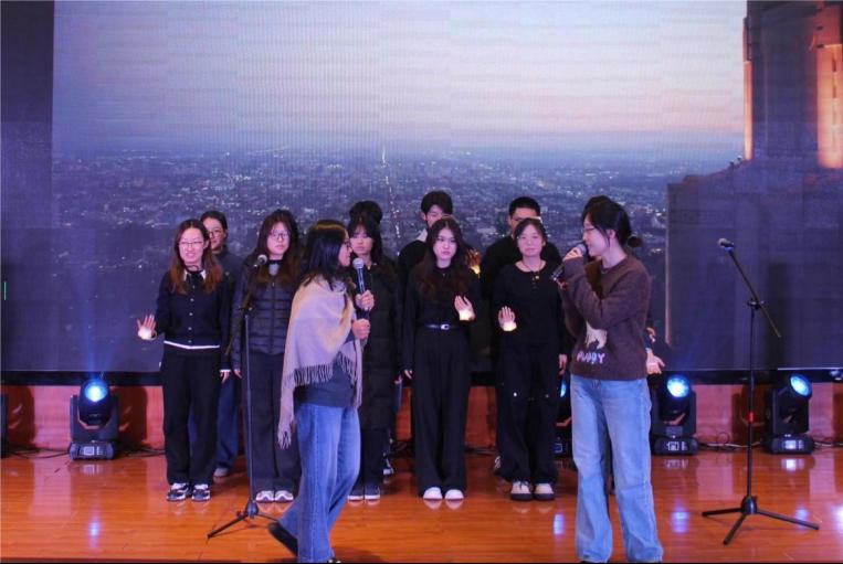 外国语言文学类2504班深情演绎经典旋律City of Stars,唱出了星光之下的梦想与坚守。温柔的爵士曲调交织着爱情的纯粹与追梦的勇气,仿佛将观众带入霓虹闪烁的“星光之城”。