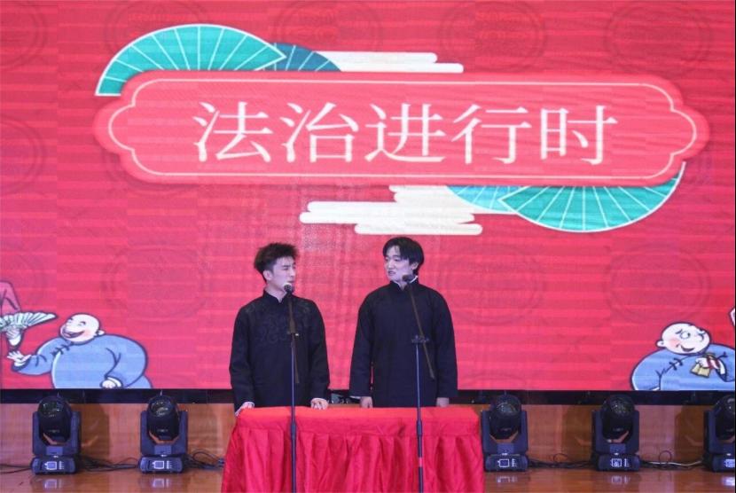 接下来英语2303班鲁强、数学2501班孙繁兴带来相声《法治进行时》,以幽默包袱拆解法律知识,在笑声中传递法治精神。传统曲艺与现代法治碰撞,让枯燥条文在“接地气”的表演中“活”了起来。