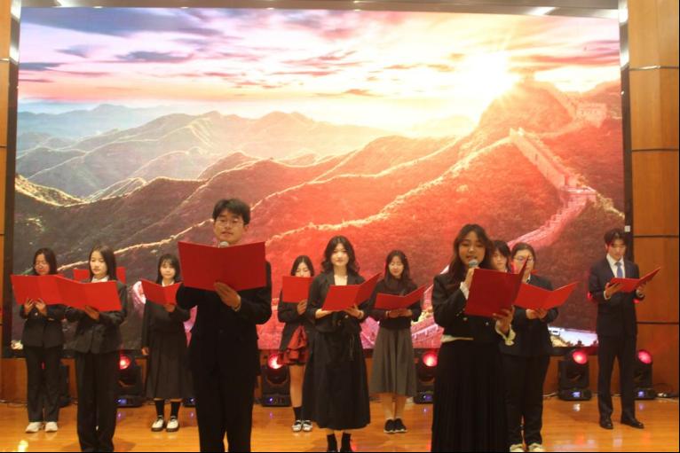 由25级各班同学组成的朗诵团带来了诗朗诵《山河作答》。朗诵者们以磅礴诗篇,致敬将岁月走成光华的奋进者,共同聆听时代与山河的对答。从铿锵词句中,仿佛能看见前行者挺成山脉的脊梁和用汗水照亮的长路。
