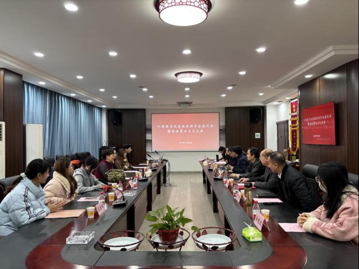 2025年12月26日上午9:00,外国语学院原任教教师、归国华侨、著名企业家蒋维英先生之女蒋岳慧女士到访学院,学院党委书记李涛,院长杨文地,党委副书记孙胜,副院长仲文明、鄢宏福,学工办主任蒋知、团委书记李雅丽、辅导员徐智欣及蒋维英奖学金获奖学生代表与蒋岳慧女士在外语楼332会议室进行了深度交流。