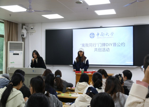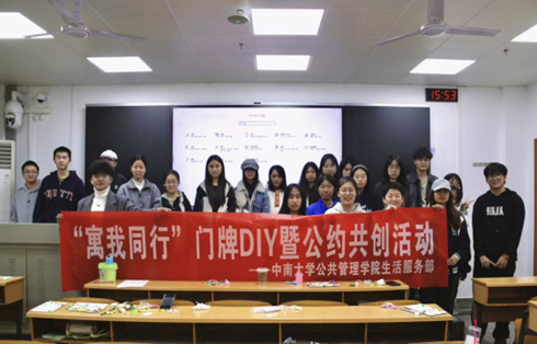 11月9日下午2时,公共管理学院组织的“寓我同行”寝室门牌DIY暨公约共创活动在天心校区世纪楼A203顺利举行。本次活动吸引了16组寝室参加,旨在丰富学生寝室文化生活,激发同学们的创造与协作精神。