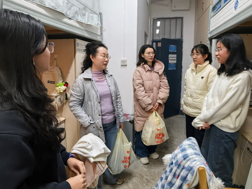 新学期伊始,为深入了解2025级新生开学适应情况,切实落实“以学生为中心”的育人理念,3月7日下午,公共管理学院社会学系2025级新生班导师米莉、罗聪聪走访学生宿舍,看望慰问同学,送去学院的关怀与温暖。
