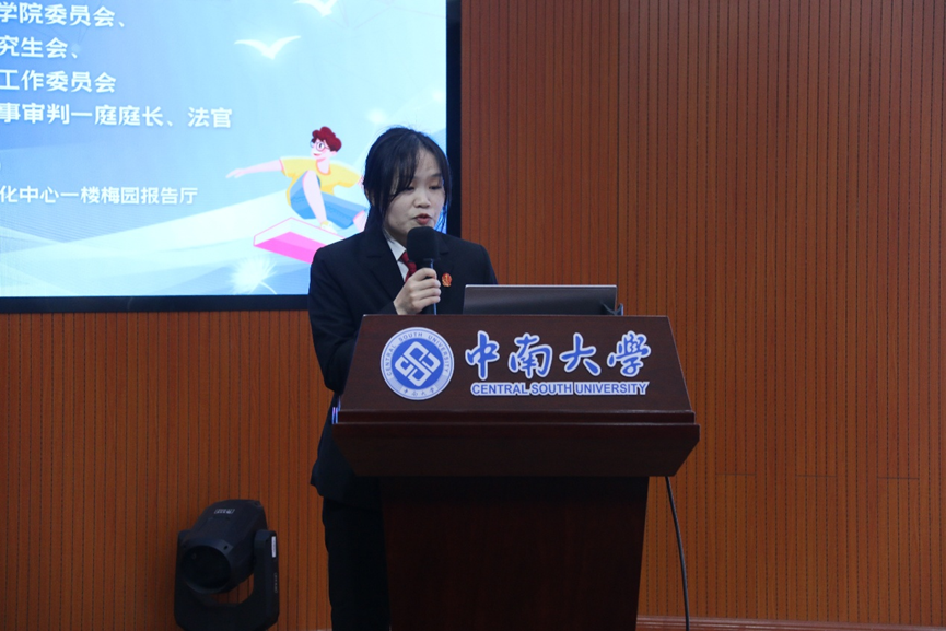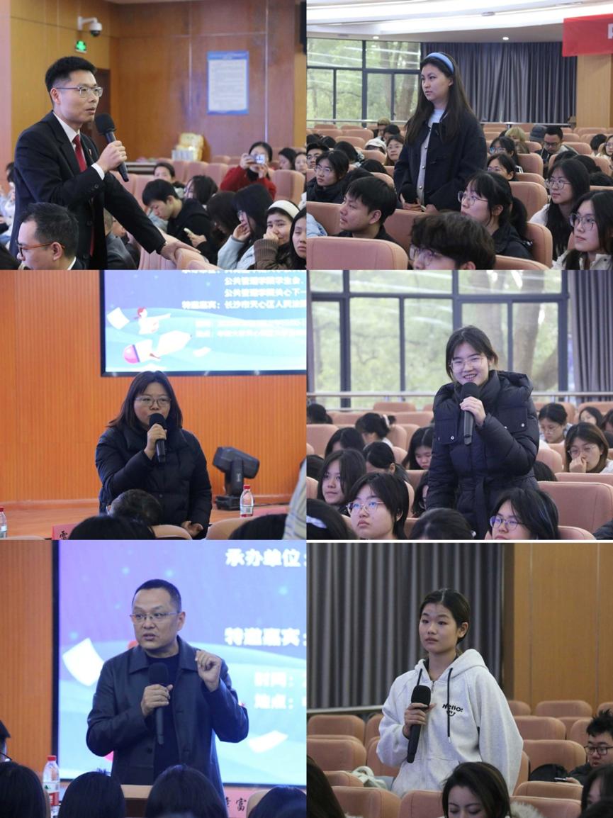为迎接3·15国际消费者权益日,进一步提升大学生消费维权意识与风险防范能力,2026年3月15日10点,在天心校区梅园报告厅一楼,公共管理学院举行3·15“锋”守权益,佑护校园——消费者权益保护进校园宣讲会活动。天心区人民法院民一庭庭长章富琼、副庭长雷金菊,法官何幸、谭志军、熊云凤、黄沈阳,天心区法院团总支书记首子航,学院党委副书记耿贵斌、关心下一代工作委员会委员马润生、本科生辅导员梁慧出席本次活动。活动由王松阳主持。