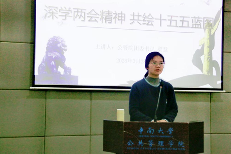 3月28日下午4时,公共管理学院在公管楼404报告厅举办“深学两会精神,共绘‘十五五’蓝图”主题团课。公管院本科生辅导员梁慧主讲,全体骨干学生参加。
