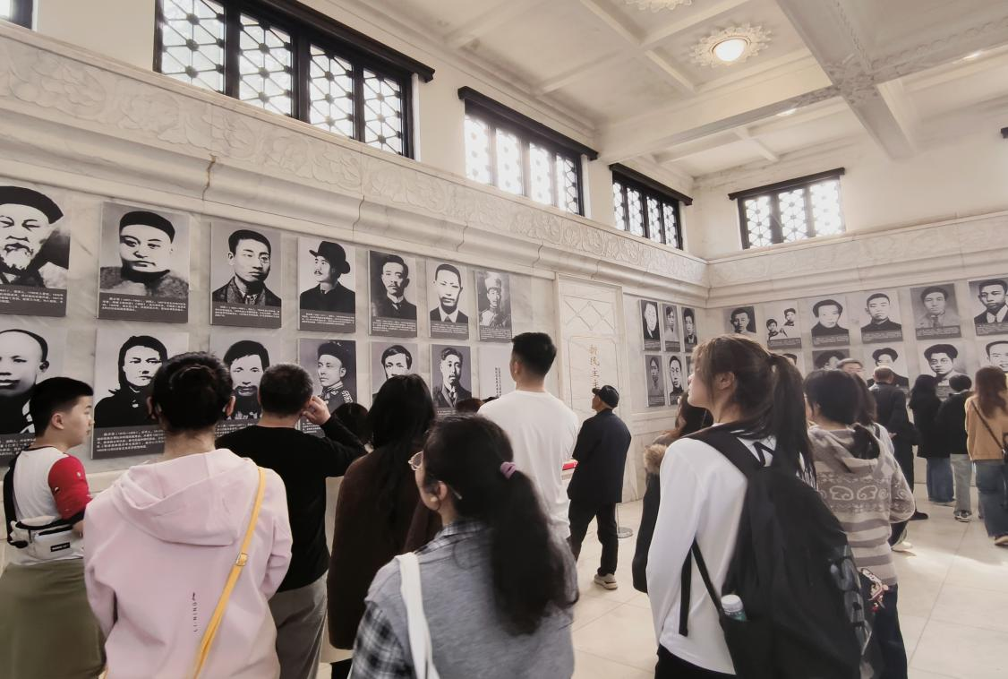 仪式结束后,全体人员有序进入湖南烈士纪念塔内参观学习。陈列室内,历史图片、文献资料与实物展品静静铺展,同学们驻足凝视、认真研读,深入了解157位湘籍烈士的英勇事迹,在感悟英雄壮举中砥砺初心使命。