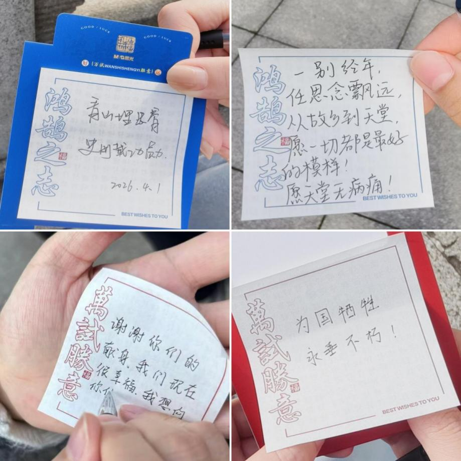 活动尾声,同学们手持纸笔,书写对革命先烈的崇敬追思、对已故亲友的深切怀念以及对青春使命的质朴承诺。祭扫之余,大家漫步园区,在春日盛景中感悟岁月静好的来之不易,祈愿山河无恙、国泰民安。