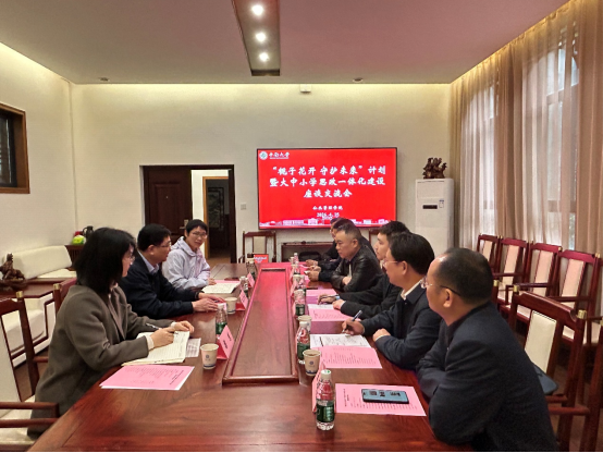 4月15日上午10时,taptap官方网站公共管理学院与喻家坳乡人民政府、宁乡一中白马桥中学、喻家坳中学在天心校区公管楼106室召开“栀子花开 守护未来”计划暨大中小学思政一体化建设座谈交流会。喻家坳乡党委委员、宣传部长欧阳步云,宁乡一中白马桥中学党总支书记、校长彭海军,业务副校长王立山,德育副校长胡龙武,喻家坳中学党总支书记、校长喻继星,德育副校长潘衡等一行来院交流。我院党委副书记耿贵斌,公管系副教授雷望红,辅导员梁慧共同出席,共商校地协同推进大中小学思政教育一体化新路径。会议由梁慧主持。