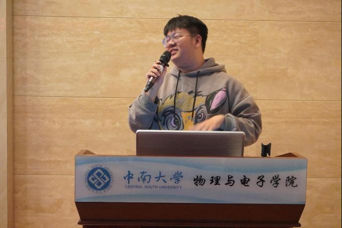 之后,应物专业排名第一的周搏升学长分享了应用物理专业的学习经验,给同学们提出了忠告:要以学习为主、尽量读研、多结交朋友、规划好大学各阶段的学习,并详细介绍了各类竞赛,对参加竞赛的时间和方法给出了自己的见解。