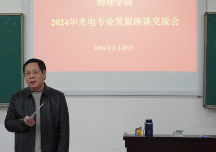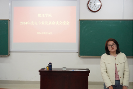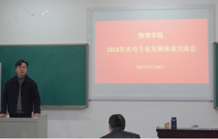 3月20日下午,学院在物理楼124教室召开光电专业发展座谈交流会,会议由2021级辅导员刘伟杰主持,院党委副书记安少波出席会议,学院全体2021级、2022级光电专业学生参加会议。
