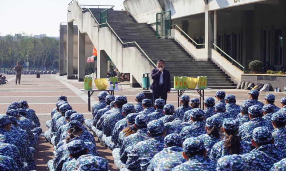 新生们以饱满的精神状态迎接学院领导的到来,孙克辉院长在整齐的新生方阵前发表讲话。他代表学院对坚持训练的新生们给予高度赞扬,向同学们表达亲切关怀与慰问,向全程指导的教官表达感谢。他提到,军训是大学生从校园走向成长的重要一课,能帮助大家快速适应集体生活、培养团队协作能力。他希望同学们珍惜这段特殊经历,把军训中养成的纪律意识和拼搏精神,转化为未来学习生活的动力。