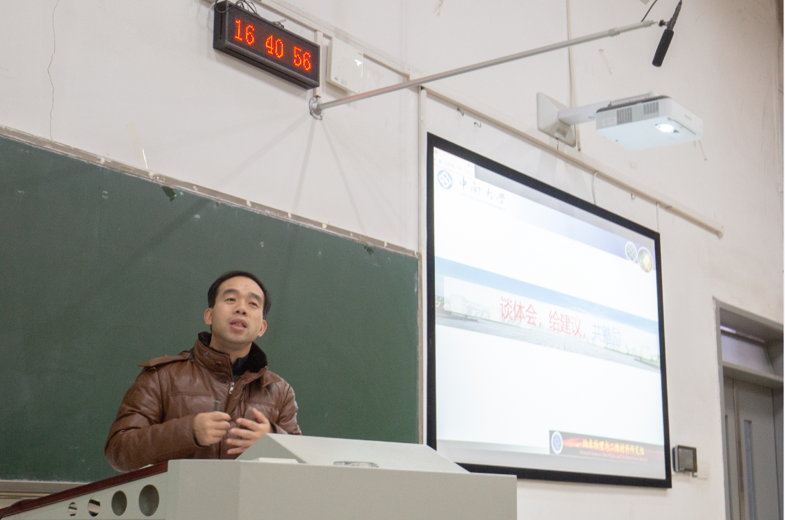 会议第二项,教师代表物理系主任欧阳方平教授就个人十多年培养本科生的经历做了报告,他提到,毕业设计是提升学生能力的大好机会,大家要从思想上高度重视;他建议同学们投入足够的时间、多请教、多思考,努力夯实基础。会议第三项,学生代表应物1601班张熙同学发表了讲话,他首先代表16级全体学生向辛勤付出的老师们表达了感谢,也表达了要扎扎实实保质保量完成毕业生设计的决心;他呼吁同学们,第一,努力学习,勤于实践,探索真知;第二,遇到不会的问题要虚心求教;第三,诚实守信,坚守本心,要对自己对学院对学校负责。