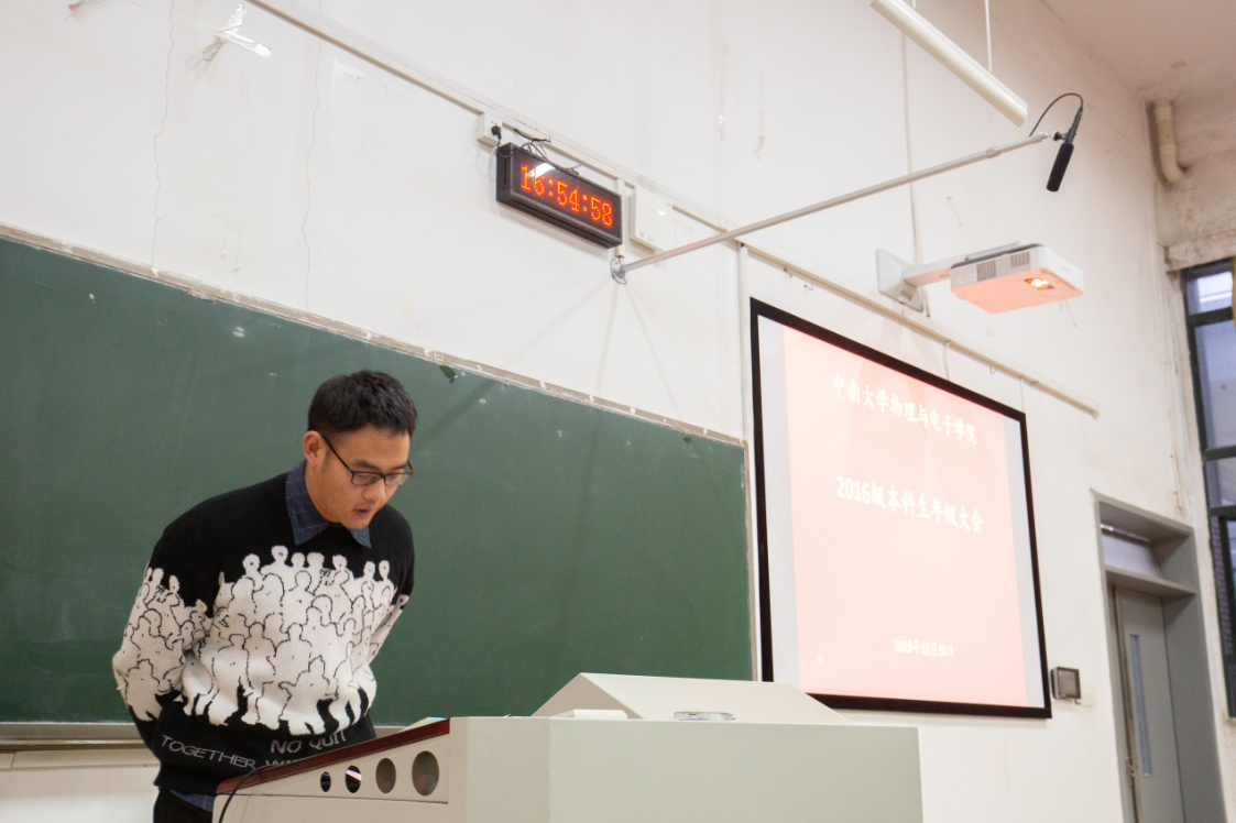 12月30日下午4时,taptap官方网站物理与电子学院2016级本科生毕业论文动员大会在新校区D座123顺利召开,物理与电子学院副院长龙孟秋,全体毕业设计指导教师,2016级全体学生参加本次会议,会议由2016级辅导员肖佳珣主持。