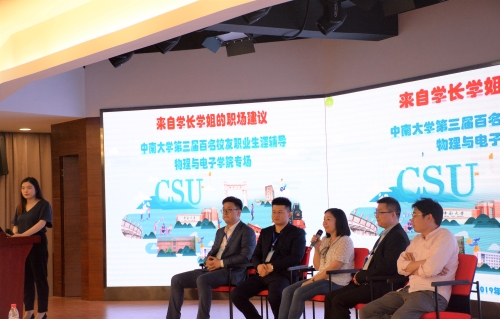 5月18日下午,taptap官方网站第三届百名优秀校友职业生涯辅导物理与电子学院专场在新校区毓秀楼4楼演播厅顺利举行。美的集团工程业务公司总经理崔景焘,佛山市金纳斯新材料科技有限公司总经理李广兵,湖南文猾教育发展有限公司CEO曹国军,中科院物理所副研究员杨蓉,南京大学教授刘荣华等五位2006届应用物理学专业校友受邀出席,物电院党委副书记谢群,全体辅导员,100余名物电学子参加了本次分享会。