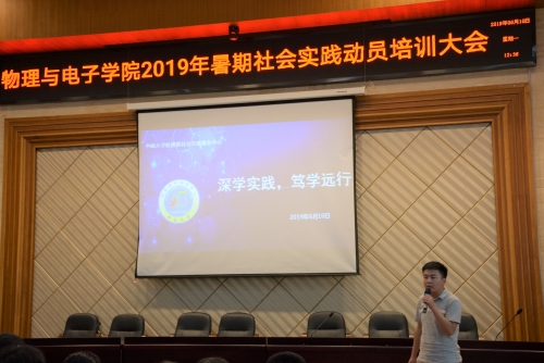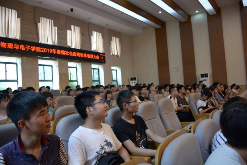 6月11日中午,物理与电子学院2019年暑期社会实践答疑会在物理楼116报告厅顺利举行。会议由分团委书记杨凌云老师主持,参与本年度暑期社会实践的百余名学生参加会议。