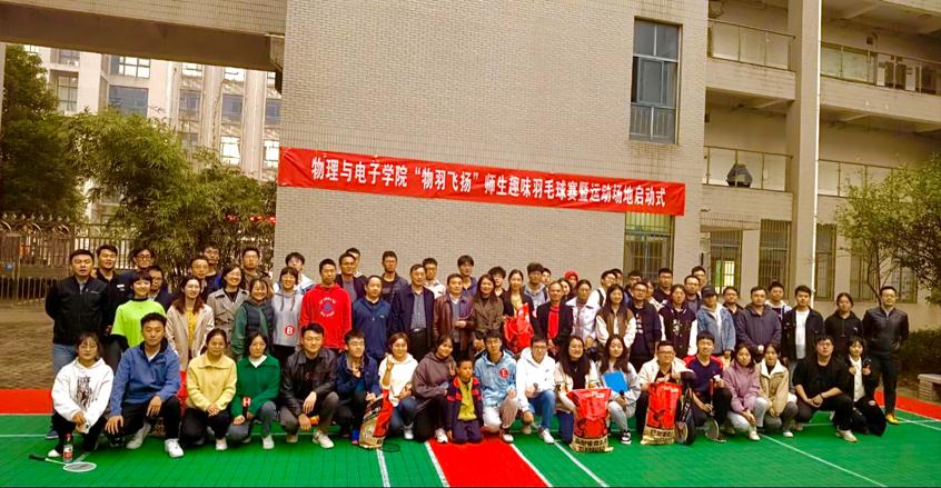11月25日下午,物理与电子学院“物羽飞扬”师生趣味羽毛球赛暨运动场地启动式在学院新建运动场地举行,60余名师生组成的8只队伍参加了此次活动。院领导李登伶、孙克辉、谢群、李长庚也加入到比赛队伍当中。