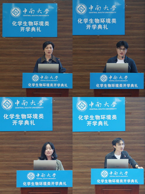 会议第一项是刘有才书记作新生寄语,以“立大志、成大才”勉励新生将个人成长融入学科与国家发展,言简意赅却掷地有声。何震老师、刘恢老师和王军老师随后分别对化学化工学院、冶金与环境学院和资源加工与生物工程学院的基本情况做了详细的介绍,并热烈欢迎各位新同学的到来。他们希望同学们能够脚踏实地,潜心学问,在未来的学习生活中收获成长与突破。