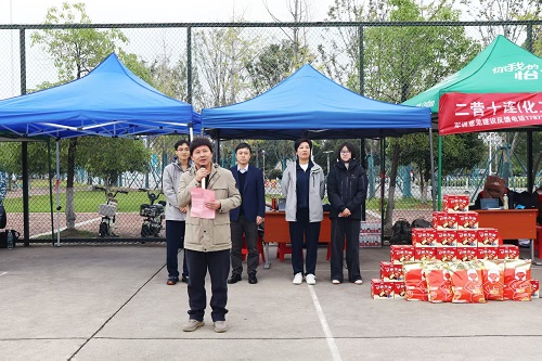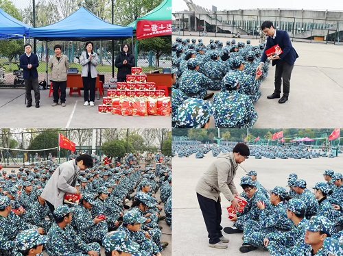 慰问现场暖意融融,领导与老师们亲手为新生分发慰问品。这份贴心关怀让新生们在训练间隙感受到了学院大家庭的温暖,笑容洋溢在每一张年轻的脸上。