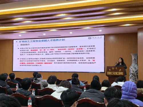 范晓慧书记系统介绍了矿物加工工程专业卓越人才培养计划实验班的创建背景、培养优势及前沿知识体系。她指出,该项目旨在整合优质资源,打造拔尖人才孵化器,引领学生掌握核心技术,勇攀专业高峰。范书记号召同学们,要积极传承新时代矿业精神,争做“强国有我”的时代新人,推动行业向绿色化、智能化转型,为可持续发展贡献青春力量。