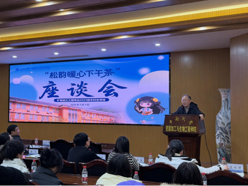 3月3日,资源加工与生物工程学院“松韵暖心下午茶”师生交流座谈会在生物楼301国际报告厅举行。中国工程院院士姜涛、学院党委书记范晓慧、党委副书记刘若华,以及各系室负责人、班导师、学工办全体辅导员和矿物加工工程专业2025级全体本科生参与座谈。本次座谈会围绕“展望专业未来,培育时代英才”的核心主题,聚焦矿物加工工程专业发展和卓越班建设开展交流。