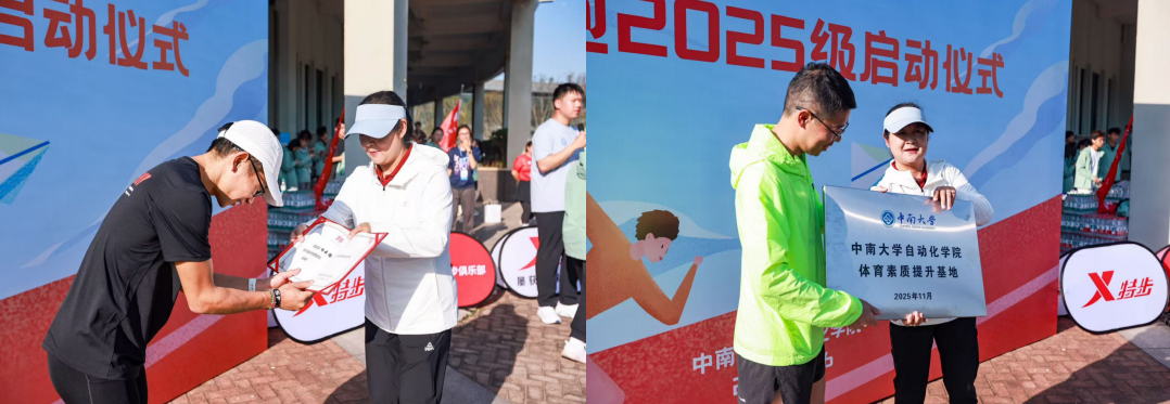 11月16日下午,自动化学院举行2025级新生环校跑启动仪式。自动化学院党委副书记黄亚、特步体育湖南公司总经理刘文甫、特步跑步俱乐部负责人朱平、学院辅导员代表等出席启动仪式,600余名本科生参加环校跑。仪式由25级辅导员范宇轩主持。