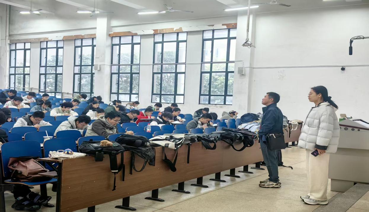 本次考试采取无人监考的形式,学院党委副书记王新辉老师、25级辅导员宋晓萌老师也深入考场巡查考试组织情况,了解同学们的考试状态,对考风考纪提出明确要求。