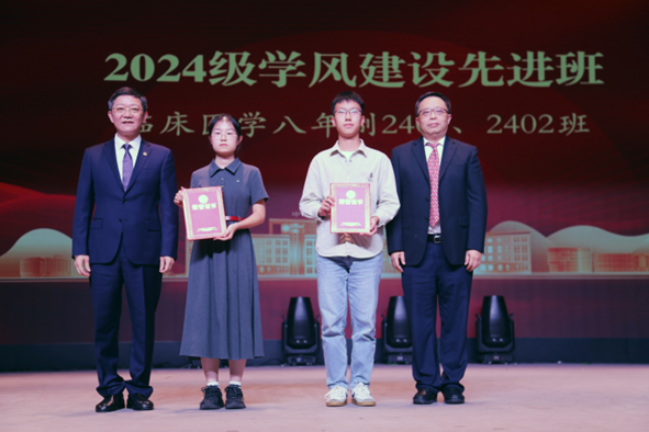 随后,大会对2024级学风建设先进集体与个人进行了表彰。过去一年,湘雅医学院在学风建设方面取得显著成效。紧抓学风建设,意在激励各位同学奋发向上,学好本领,服务伟大祖国,增进人类福祉。