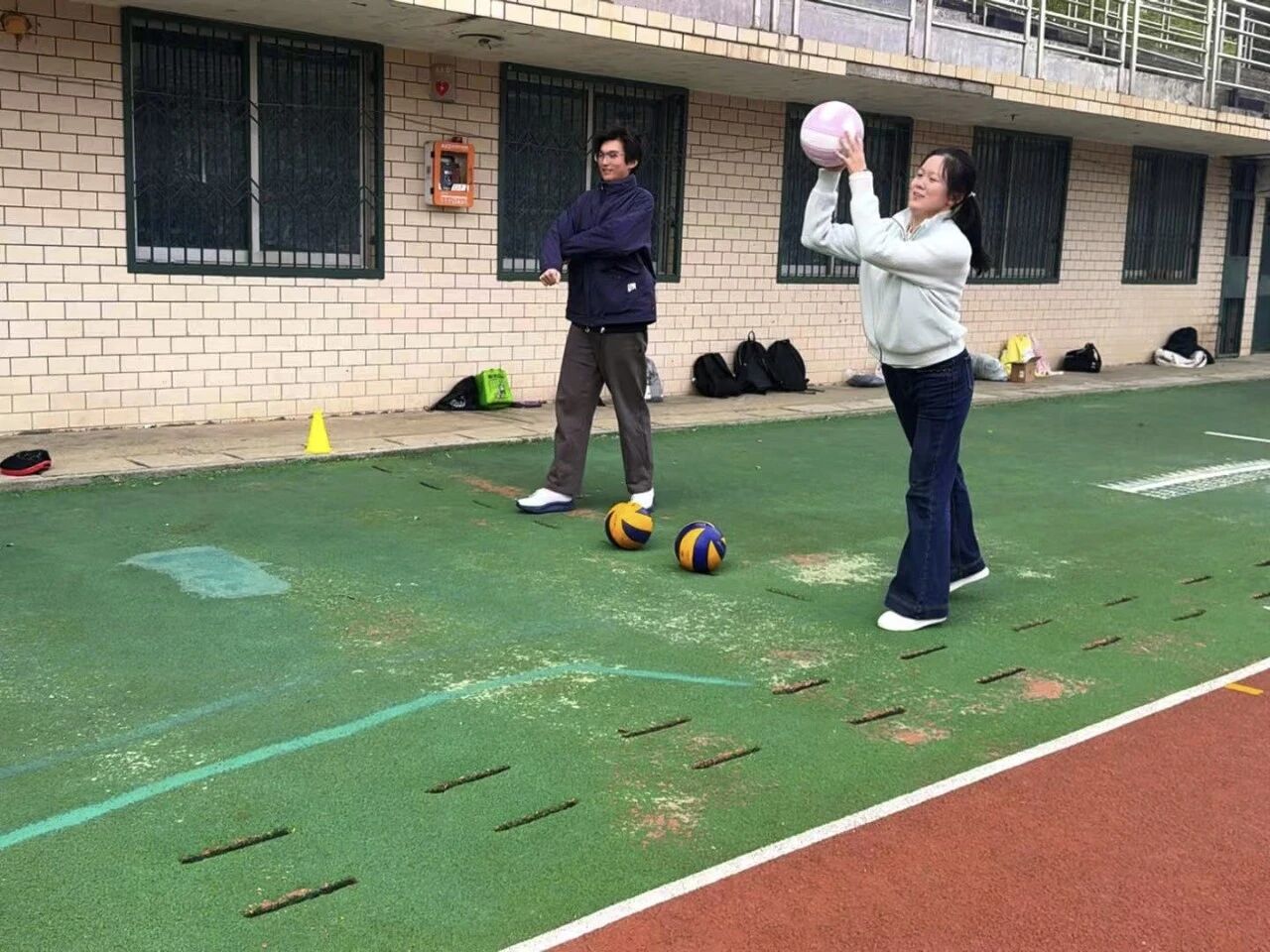 这不仅是力量的比拼,更是精准度与创造力的较量。队员们站在5米外,单手滚动排球瞄准瓶子,眼神专注、动作沉稳。“砰!”随着球落地,瓶子应声倒地,现场立即响起热烈的喝彩声;即便未能击倒瓶子,大家也毫不气馁,为队友的勇敢尝试鼓掌加油。每一次滚动都是对专注力的考验,每一次得分都凝聚着努力与运气。