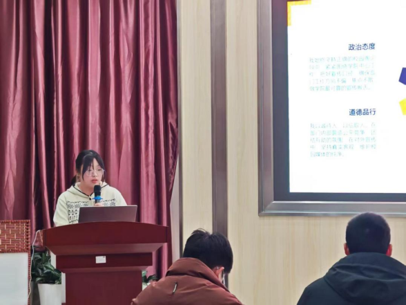 王坎老师提出,部分成员述职准备不够充分,汇报内容需更丰富具体,部分工作在落地执行环节的推进力度上仍需加强。在团学会学生干部培训会上,王坎老师总结四个核心能力培养方向,希望学生干部能内化于心、砥节砺行:锤炼遇事能谋的谋划力,提升张口能说的表达力,强化提笔能写的文字力,筑牢干事能成的执行力。最后,王坎老师希望全体成员加强团队协作,做好部门建设,以务实作风、扎实能力推动团学工作再上新台阶。