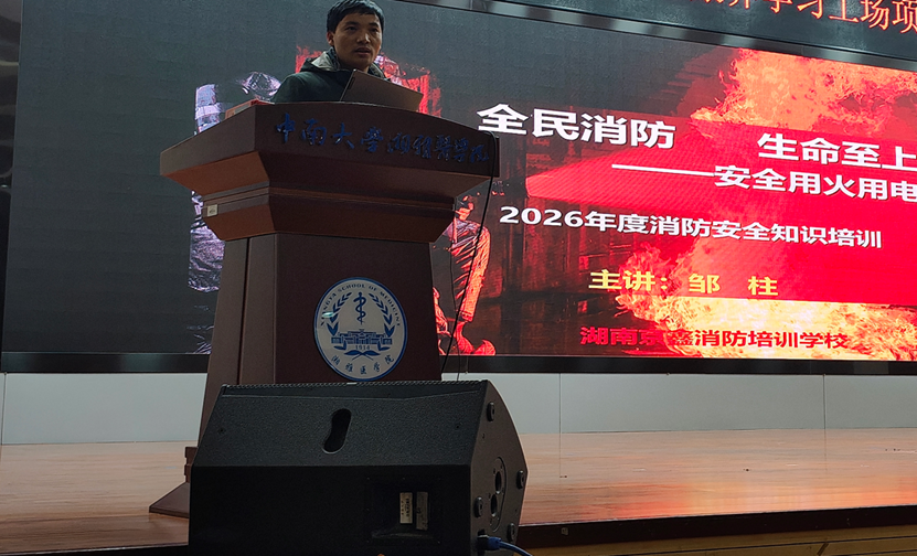 为进一步增强研究生安全意识,提升应对火灾、电信诈骗等安全风险的能力,营造安全稳定的校园环境,2026年1月21日,湘雅药学院组织全体研究生在杏林校区图书馆报告厅举办湘雅药学院实验室消防及网络安全等专项培训。本次活动紧密结合学习科研与日常生活实际,内容涵盖消防安全知识、实验室及宿舍用火用电安全、消防器材实操以及防范电信网络诈骗专题宣讲。学院副院长周文虎主持,学办主任桂玲智、实验中心刘健豪等老师出席。