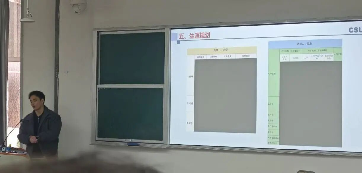 本次大会以生涯规划为重点。刘坚旺老师结合年级特点与专业前景,从自我认知、目标定位、升学就业、能力提升、实践锻炼等方面进行系统宣讲,引导同学们立足当下、着眼未来,明确发展方向,制定合理规划,将个人成长与专业学习、社会需求相结合,在大学阶段不断提升综合素养。