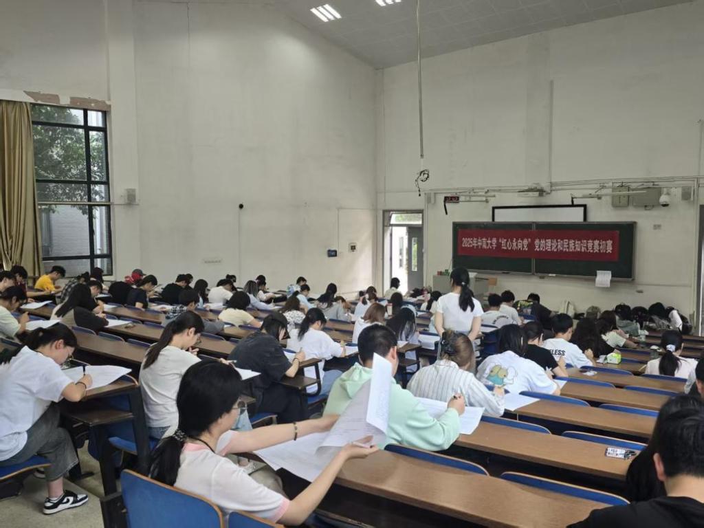 初赛于4月20日在潇湘校区D座有序开展,以笔试形式全面检验学习研究成效。考场内秩序井然,选手们专注审题、认真作答,展现出深厚的理论素养与扎实的知识功底。