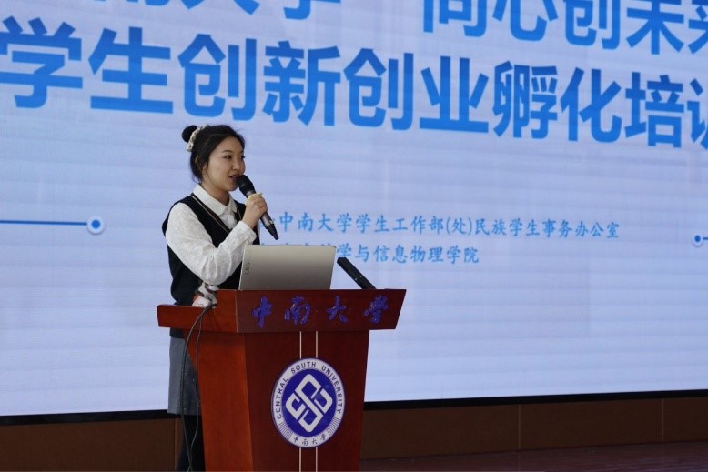 活动伊始,主持人加依达勒・哈依拉提热情开场,向在场师生介绍了到场嘉宾与“同心创未来”项目的背景意义。该项目自2021年启动,专为中南学子尤其是多民族融合团队搭建创业孵化平台,已成功孵化50余个优秀项目(其中包括多项国家级、省级创新项目),并表示新一年的申报通道将于12月正式开启,为怀揣创新梦想的学子提供全方位支持。