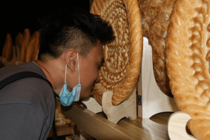 “这是玫瑰馕、杏仁馕、辣皮子馕……这里总有一款适合你!这里有各种各样的馕,在这里只有你想不到,没有我们做不出的馕!”讲解员一脸骄傲的为队员们介绍当地在保留传统风味的同时,加以实践创新,结合全国各地口味的不同,研制出了适合广大人群口味的馕产品。