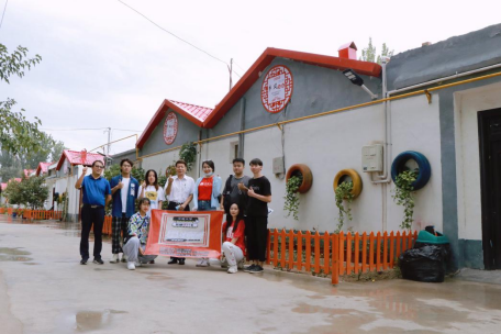 活动结束,热情好客的村民朋友邀请队员们去家里做客。红瓦白墙,鲜花锦簇,村庄旁两排高大的白杨树笔直的挺立着。