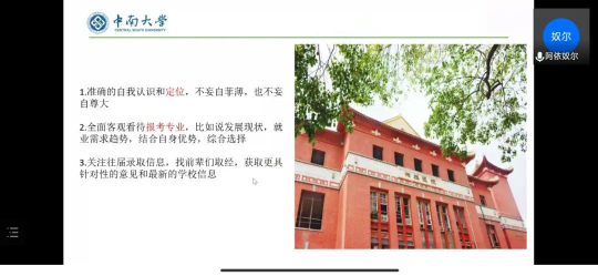 “面临继续深造和工作的岔路口,要根据自己的实际情况进行选择”“有目标才有方向和动力,让我们对自己的发展规划引领自己脚下的每一步”分享会前,活动主办方向报名研讨会的同学们收集了对于各分享主题,想深入了解的相关问题,并在活动互动答疑环节,由校友嘉宾予以解答。