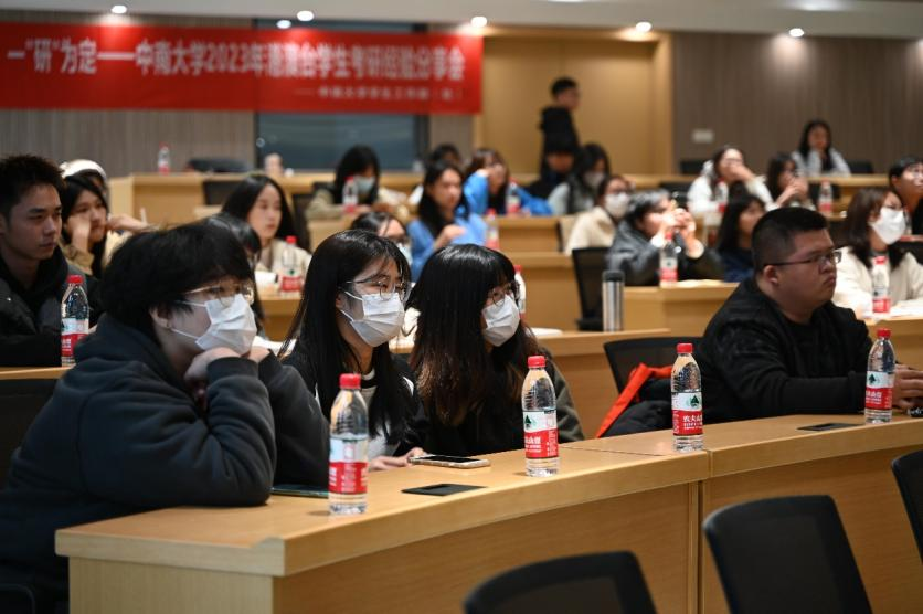 本次考研经验分享会由来自湘雅医学院的邓洋洋同学主持,共分为个人经验分享、互动问答老师寄语三个环节,采取线上线下相结合的方式进行。在座的学生们都全神贯注地聆听台上学长学姐们的研途分享,在学长学姐们的经验之谈中进一步了解了港澳台考研相关信息。