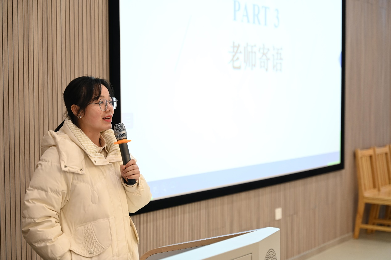 分享会进入尾声,在老师寄语环节中,宁霞老师对本次经验分享会作了以下三点总结:第一,她希望大家首先能明确好自己的目标和方向,再坚定脚步向前迈进。第二,她指出,每个人都是独一无二的,正因如此,我们应该更深入地去了解自我,才能更好地寻找出一条最适合自己的道路,学长学姐们的经验虽如珍宝,但也仅供参考。同时,她还鼓舞大家要坚定自己的理想信心,彼方尚有荣光在!最后,她祝愿学子们都能学有所成,一战成硕!