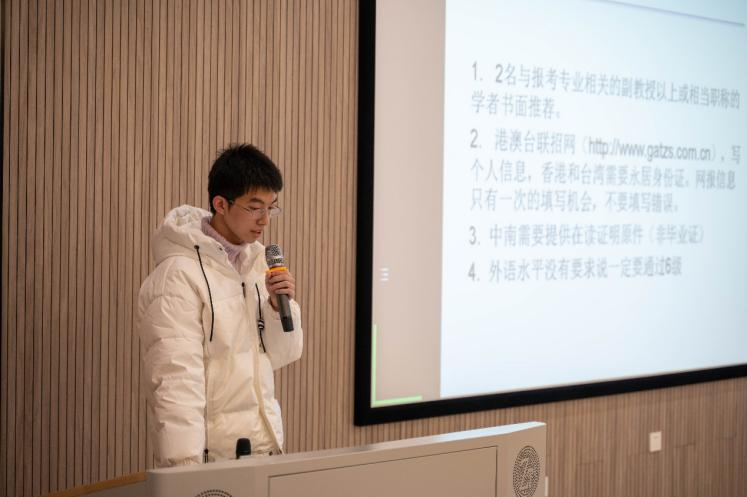 互动问答环节主要围绕考研流程及准备、面试、跨专业报考三个方面展开。面对学弟学妹们的踊跃发问,经验丰富的学长学姐们结合港澳台生考研环境及自身经历都耐心地一一解答,为学弟学妹们日后考研提供了宝贵的参考价值。