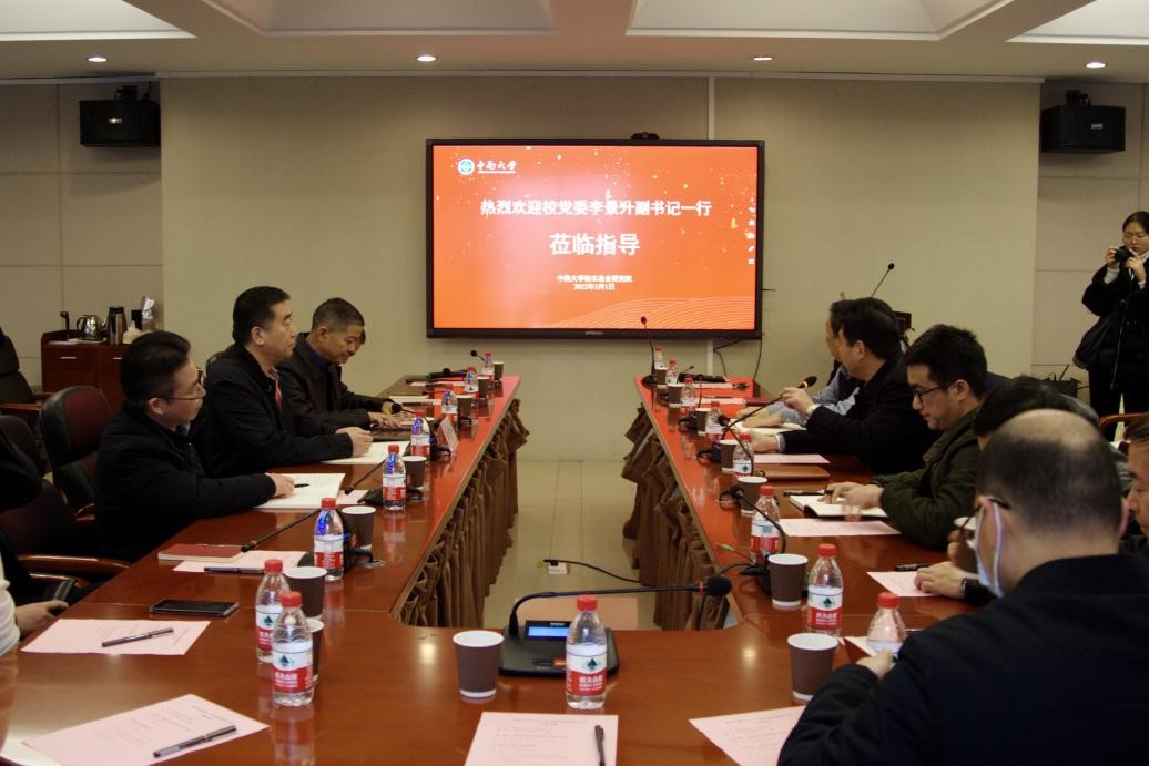 在粉末冶金研究院,李景升副书记一行参观了“三一大楼”三全育人基地和黄培云院士事迹展,现场了解研究院在学生工作方面的相关创新举措。在听取学院专题汇报后,李景升副书记作总结发言,高度肯定了研究院育人工作,表示研究院党政领导班子在立德树人过程中,有着较高的政治站位,自觉将习近平总书记系列指示要求转化为具体行动。育人基地建设理念新,资金投入大,效果成效好,结合实际情况,出台了系列举措,对学生产生了实实在在的影响,让学生感受到了老师们的关心和培养,增强了学生内心的幸福感与获得感。李景升副书记鼓励研究院领导班以立德树人为核心,为学科建设和国家发展输送更多优质人才。