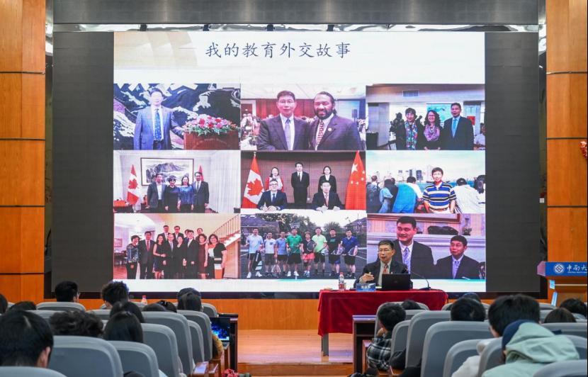张益群是前驻曼城、纽约、华盛顿教育领事,驻休斯顿、多伦多教育参赞,他结合自身多年驻外工作经历,围绕中国教育外交的发展脉络、外交官的职责与使命以及新时代中国学生如何拓展国际视野等主题展开深入讲解。他以生动鲜活的故事和亲身见闻,带领在场师生走进外交一线的工作场景,分享了自己参与教育交流、文化传播的宝贵经验。